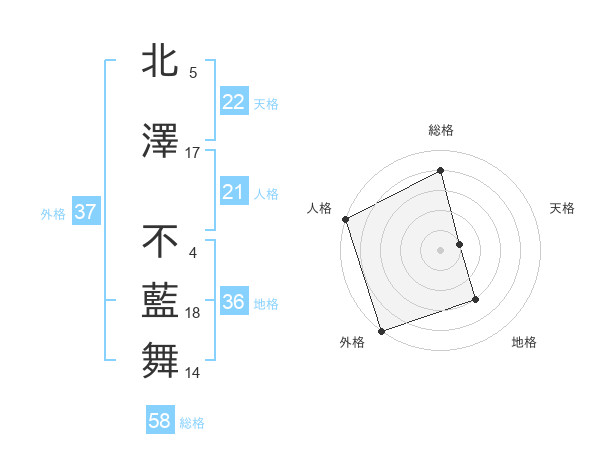 北澤 不藍舞さんを姓名の画数から五運を鑑定