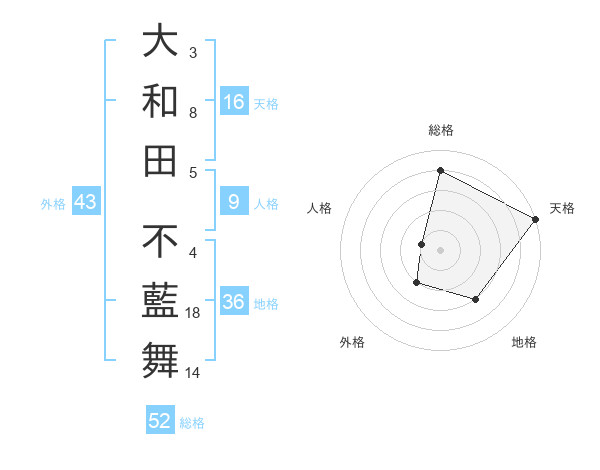 大和田 不藍舞さんを姓名の画数から五運を鑑定