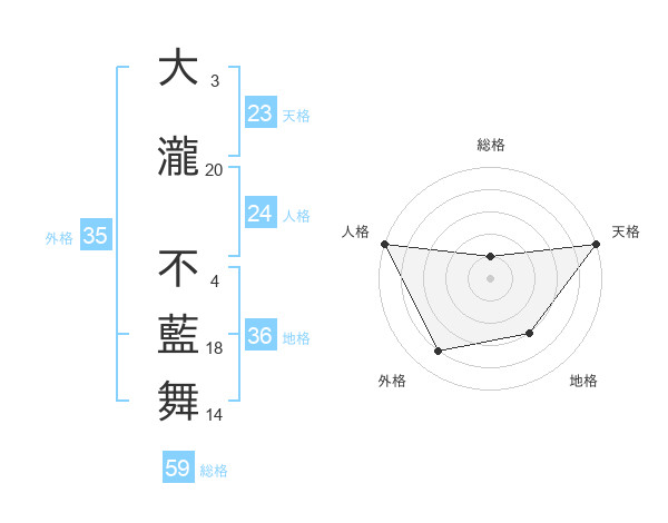 大瀧 不藍舞さんを姓名の画数から五運を鑑定