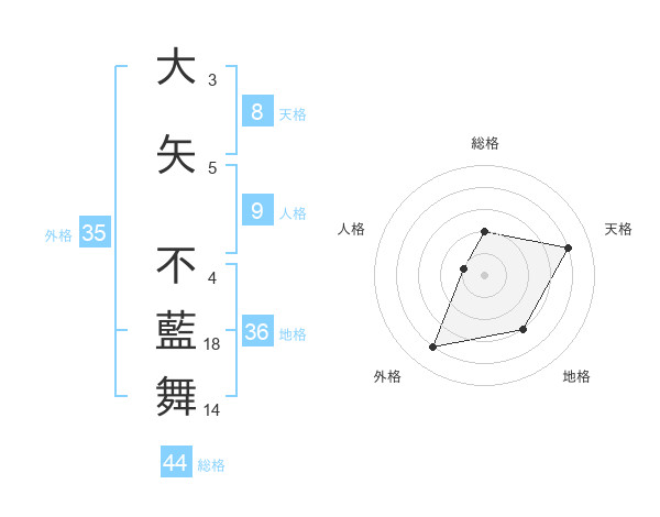 大矢 不藍舞さんを姓名の画数から五運を鑑定