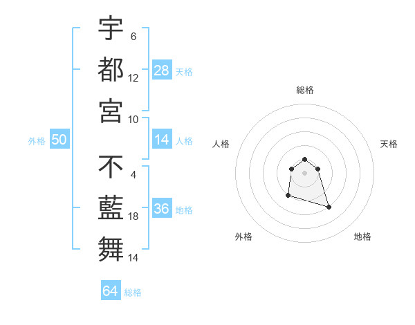 宇都宮 不藍舞さんの総格は64画の1点!