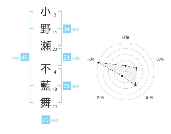 小野瀬 不藍舞さんを姓名の画数から五運を鑑定