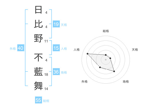 日比野 不藍舞さんを姓名の画数から五運を鑑定