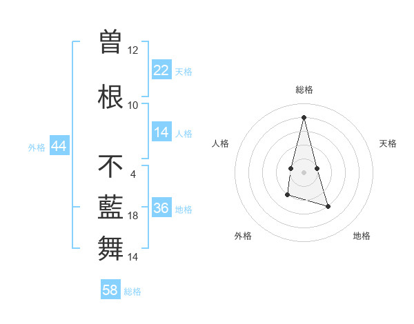 曽根 不藍舞さんを姓名の画数から五運を鑑定