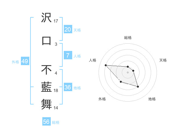 沢口 不藍舞さんを姓名の画数から五運を鑑定