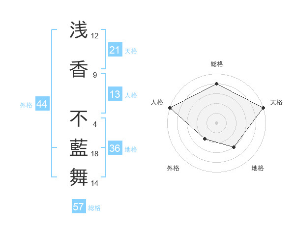 浅香 不藍舞さんの総格は57画の4点!
