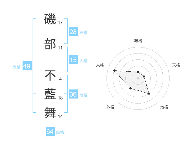 磯部 不藍舞さんの総格は64画の1点