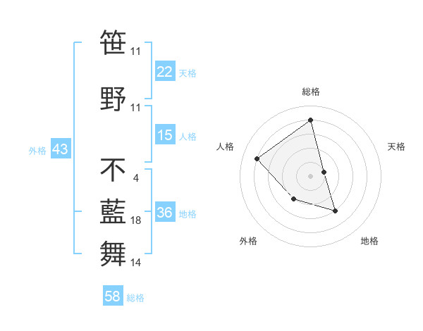 笹野 不藍舞さんを姓名の画数から五運を鑑定