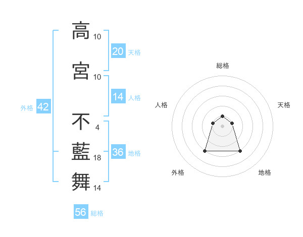 高宮 不藍舞さんの総格は56画の1点!