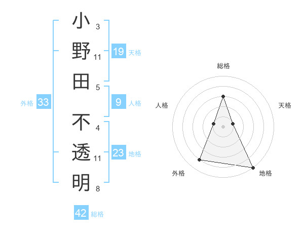 小野田 不透明さんを姓名の画数から五運を鑑定