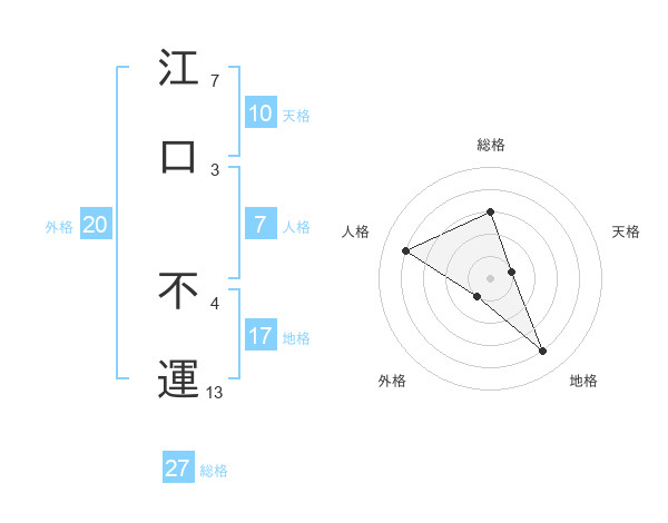 家系が持つ宿命的な運勢を表します。祖先から受け継いだ苗字ですので自分の力が及びません。家柄を象徴します。