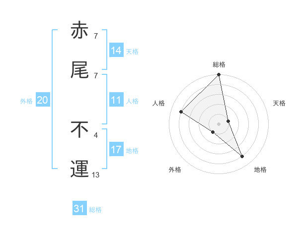 赤尾 不運さんを姓名の画数から五運を鑑定