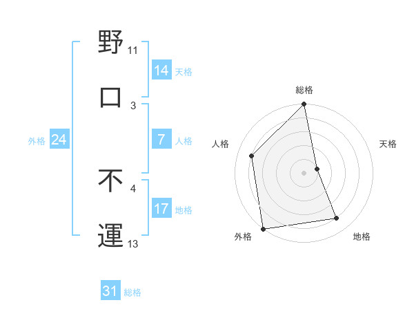 野口 不運さんの総格は31画の5点!
