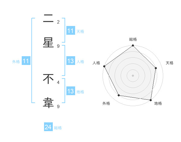 二星 不韋さんの地格は13画の5点!