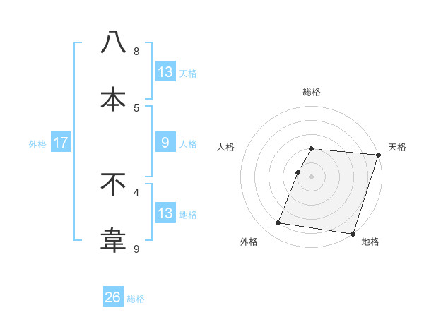 八本 不韋さんの総格は26画の2点!