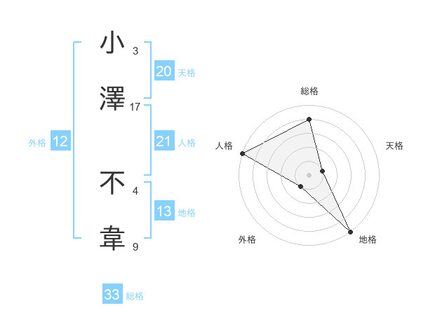 小澤 不韋さんの天格は20画の1点!