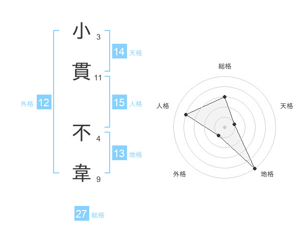 小貫 不韋さんを姓名の画数から五運を鑑定