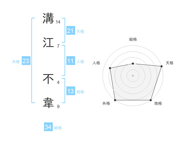 溝江 不韋さんの天格は21画の5点!