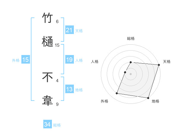竹樋 不韋さんの総格は34画の2点!