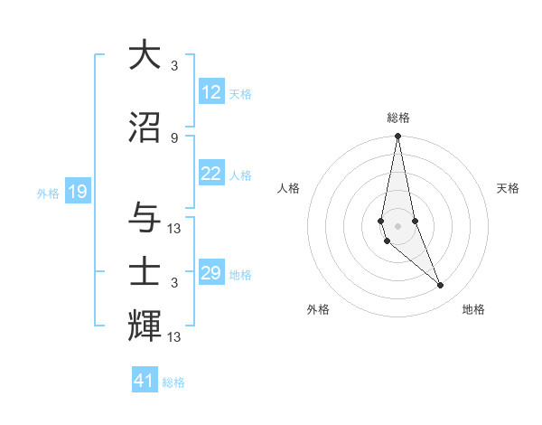 大沼 与士輝さんを姓名の画数から五運を鑑定