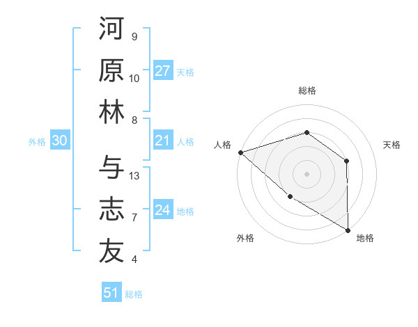 河原林 与志友さんを姓名の画数から五運を鑑定