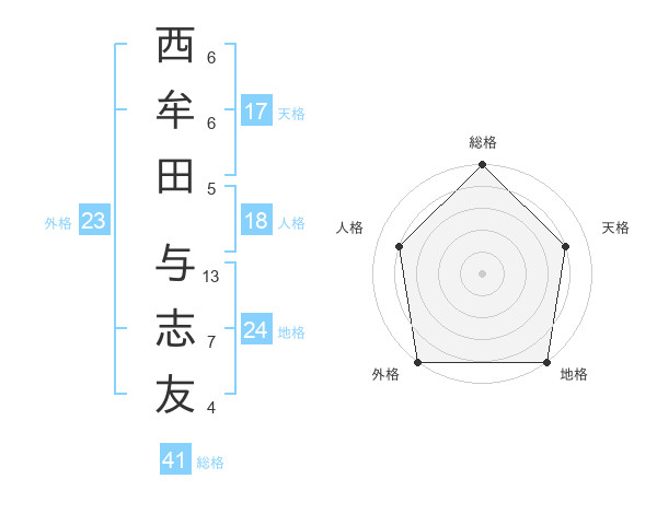 西牟田 与志友さんの天格は17画の4点!