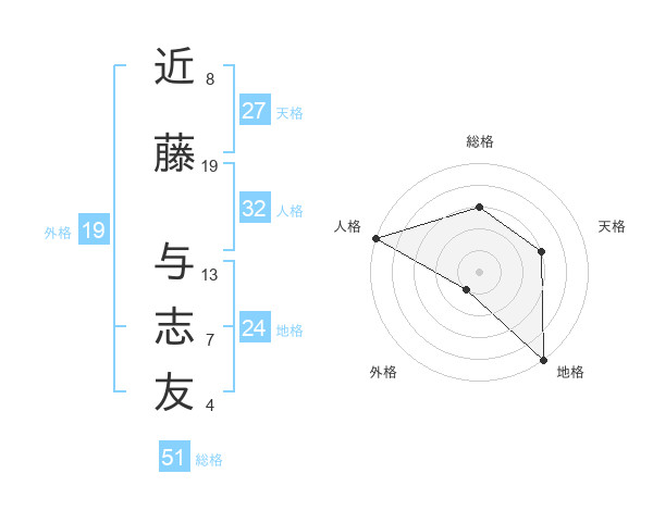 近藤 与志友さんの総格は51画の3点!