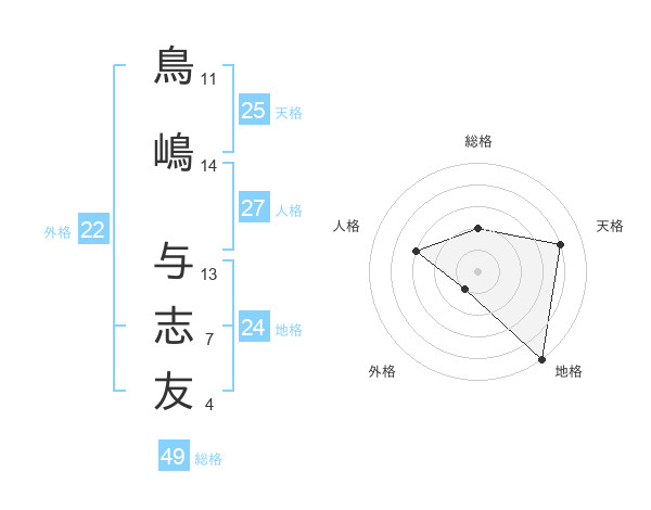 鳥嶋 与志友さんを姓名の画数から五運を鑑定