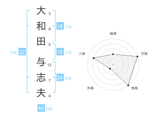大和田 与志夫さんを姓名の画数から五運を鑑定