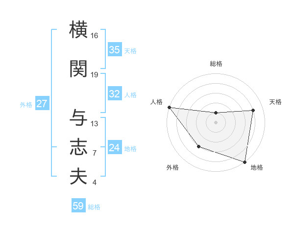 横関 与志夫さんを姓名の画数から五運を鑑定