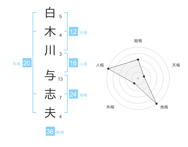 白木川 与志夫さんを姓名の画数から五運を鑑定
