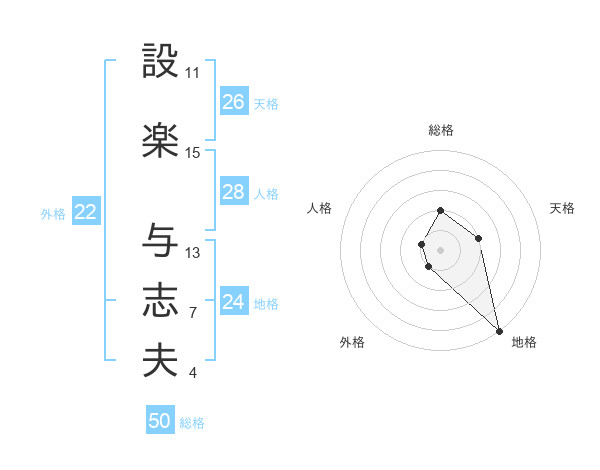 設楽 与志夫さんを姓名の画数から五運を鑑定