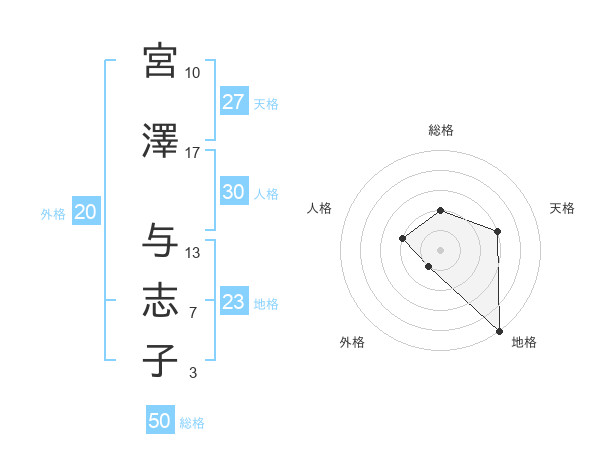 宮澤 与志子さんを姓名の画数から五運を鑑定