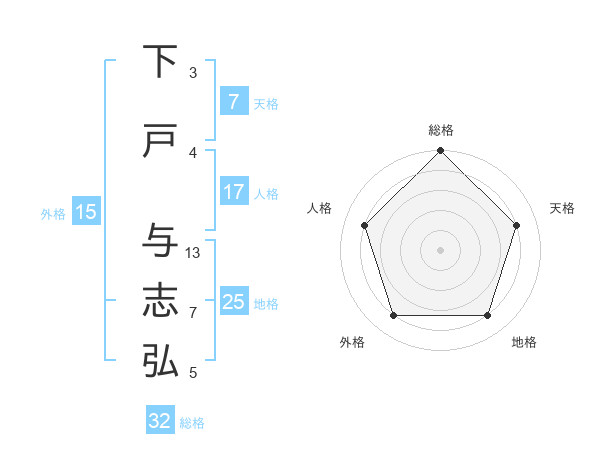 下戸 与志弘さんを姓名の画数から五運を鑑定