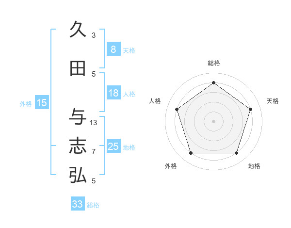 久田 与志弘さんの総格は33画の4点!