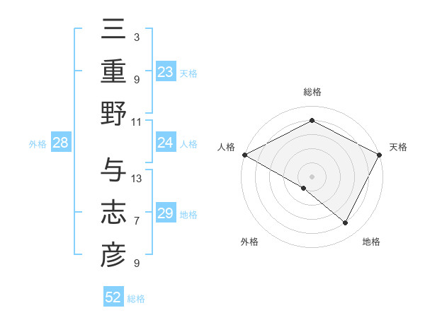 三重野 与志彦さんを姓名の画数から五運を鑑定