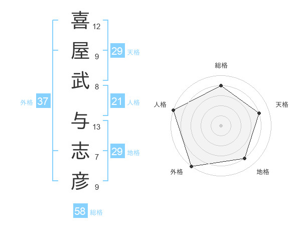 喜屋武 与志彦さんを姓名の画数から五運を鑑定