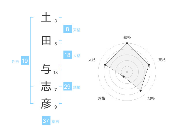 土田 与志彦さんを姓名の画数から五運を鑑定