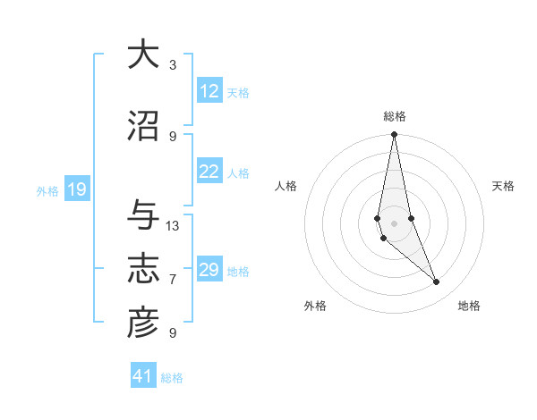 大沼 与志彦さんの総格は41画の5点!