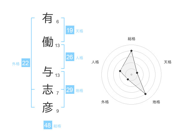有働 与志彦さんの総格は48画の4点!