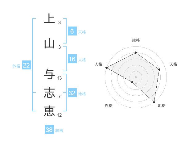 上山 与志恵さんの総格は38画の4点!