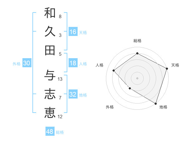 和久田 与志恵さんを姓名の画数から五運を鑑定