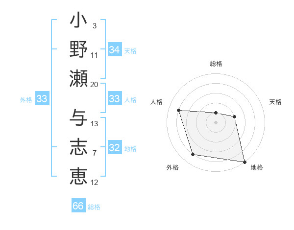 小野瀬 与志恵さんを姓名の画数から五運を鑑定