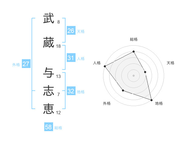 武蔵 与志恵さんの総格は58画の4点!