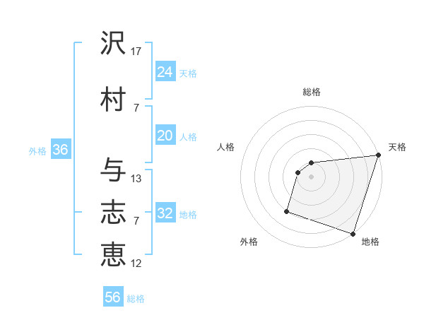 沢村 与志恵さんを姓名の画数から五運を鑑定