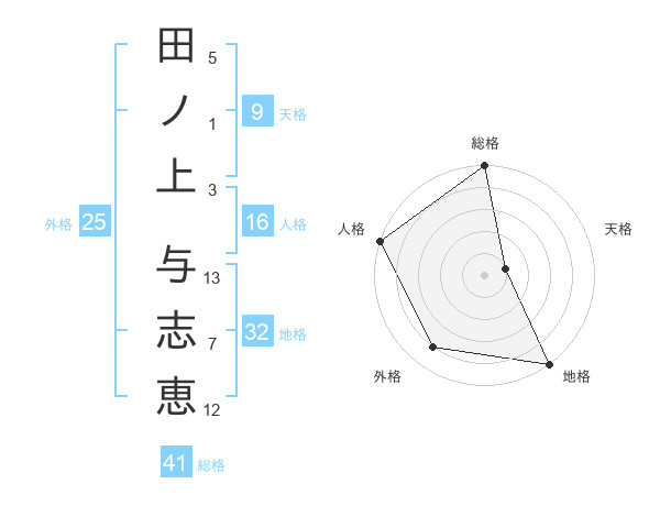田ノ上 与志恵さんを姓名の画数から五運を鑑定