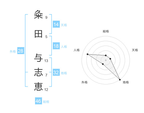 粂田 与志恵さんを姓名の画数から五運を鑑定