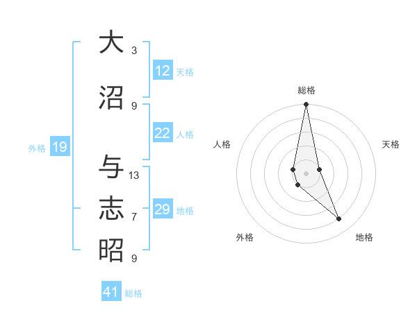 大沼 与志昭さんを姓名の画数から五運を鑑定