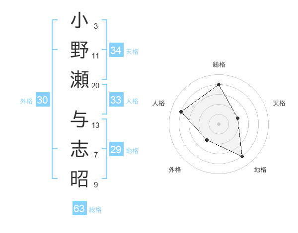 小野瀬 与志昭さんの総格は63画の4点!
