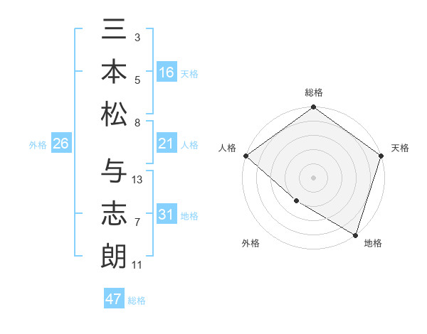 三本松 与志朗さんを姓名の画数から五運を鑑定